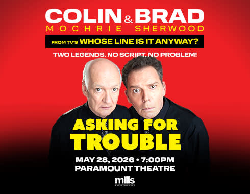 With lightning-fast wit, Mochrie & Sherwood transform the audience’s suggestions into an unpredictable evening of nonstop comedy gold. No script? No problem! “Asking For Trouble” is a wild rollercoaster ride of hilarity, where two improv legends prove they are still the best in the business. Learn more at colinandbradshow.com.