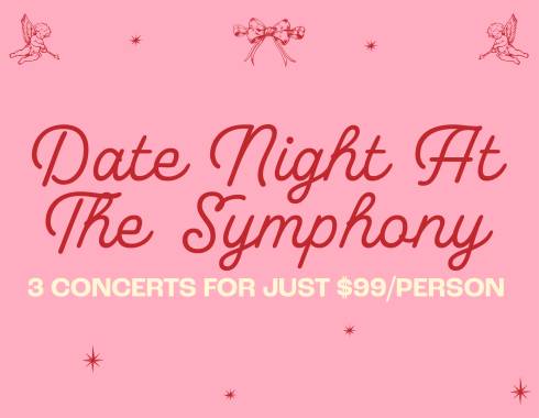 Date Night at the Symphony gets you tickets to three amazing concerts PLUS your first drink at each concert, all for the low price of $99/person.